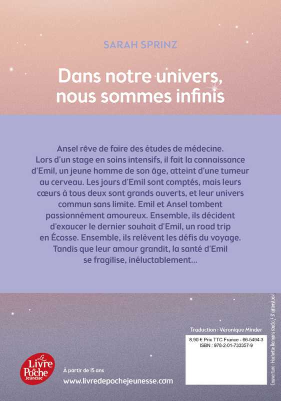 Ansel rêve de faire des études de médecine. Lors d’un stage en soins intensifs, il fait la connaissance d’Emil, un jeune homme de son âge, atteint d’une tumeur au cerveau. Les jours d’Emil sont comptés, mais leurs cœurs à tous deux sont grands ouverts, et leur univers commun sans limite. Emil et Ansel tombent passionnément amoureux. Ensemble, ils décident d’exaucer le dernier souhait d’Emil, un road trip en Écosse. Ensemble, ils relèvent les défis du voyage. Tandis que leur amour grandit, la santé d’Emil se fragilise, inéluctablement…