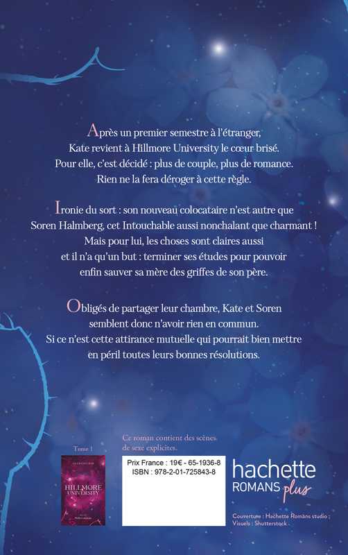 Après un premier semestre à l’étranger, Kate revient à Hillmore University, le cœur brisé. La trahison amoureuse qu’elle a vécue lors de son échange scolaire l’a profondément bouleversée. Son désespoir augmente encore lorsqu’elle découvre que sa chambre étudiante n’est plus disponible, et qu’elle a comme colocataire Soren Halmberg, dont la réputation d’Intouchable le précède. Nonchalant et plutôt asocial, Soren ne manifeste d’intérêt que pour ses coéquipiers de rugby. Son seul objectif : terminer ses études et régler ses comptes avec son père. Lorsqu’il est contraint de partager sa chambre avec Kate, son quotidien s’en retrouve chamboulé.