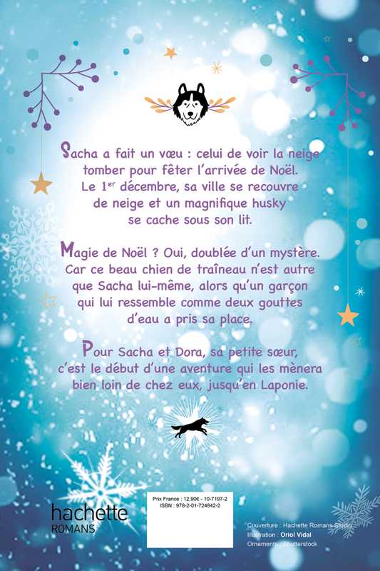 Sacha a fait un vœu : celui de voir la neige tomber pour fêter l’arrivée de Noël. Le 1er décembre, sa ville se recouvre de neige et un magnifique husky se cache sous son lit. Magie de Noël ? Oui, doublée d’un mystère. Car ce beau chien de traîneau n’est autre que Sacha lui-même, alors qu’un garçon qui lui ressemble comme deux gouttes d’eau a pris sa place. Pour Sacha et Dora, sa petite sœur, c’est le début d’une aventure qui les mènera bien loin de chez eux, jusqu’en Laponie.